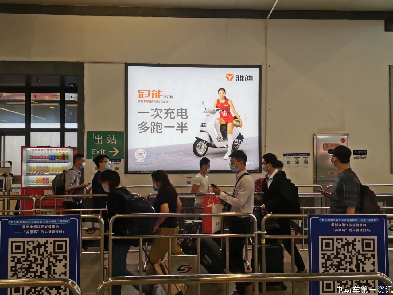 想要更直接地触达广大消费者,什么都比不上“眼见为实”。仅仅国庆、中秋双节期间,全国就接待游客6.37亿人次,雅迪在高铁站、公交站、高速路上的广告投放立竿见影。雅迪品牌形象在上海、杭州、南京、合肥、苏州等核心高铁站霸屏展示,精准影响数亿出行人群,毫无争议地成为双节期间行业曝光量最高的品牌。