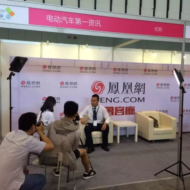 出席开幕式嘉宾接受凤凰网、电动汽车第一资讯现场采访直播